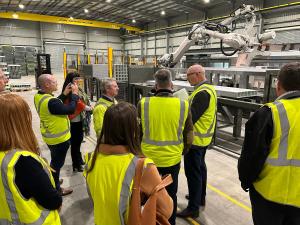 Pictured – Visitors to Wagners CFT Wellcamp manufacturing facility watching the Crossarm Assembly Line (CAL) in operation.