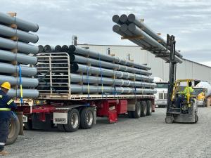 Pictured – Loading B-double with FRP utility poles at Wagners CFT Wellcamp manufacturing facility in Queensland.