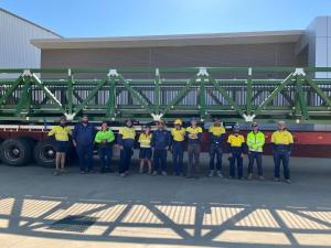 Pictured – Some of Wagners CFT construction and project crew standing in front of the preassembled Scottsville Road, pedestrian bridge ready for delivery to Collinsville in north Queensland.