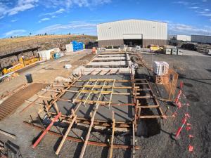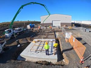 Pictured – A cement pour occurring at the new R&D area during construction.