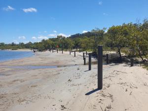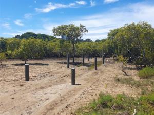 Pictured – FRP piles that have been driven into the ground for a boardwalk project.